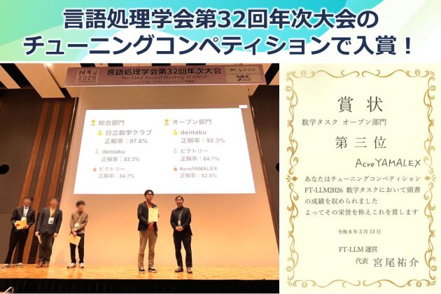 言語処理学会 NLP2026 チューニングコンペティションでAcroYAMALEXチームが数学タスク部門 第3位を受賞
