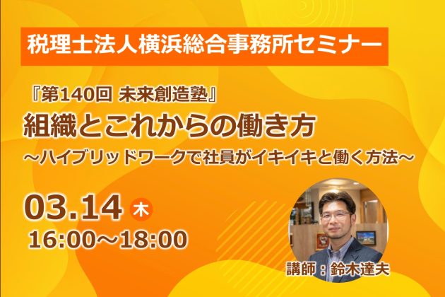 3月14日に税理士法人横浜総合事務所主催『第140回 未来創造塾』で、当社の組織改善コンサルタントが講演を行いました